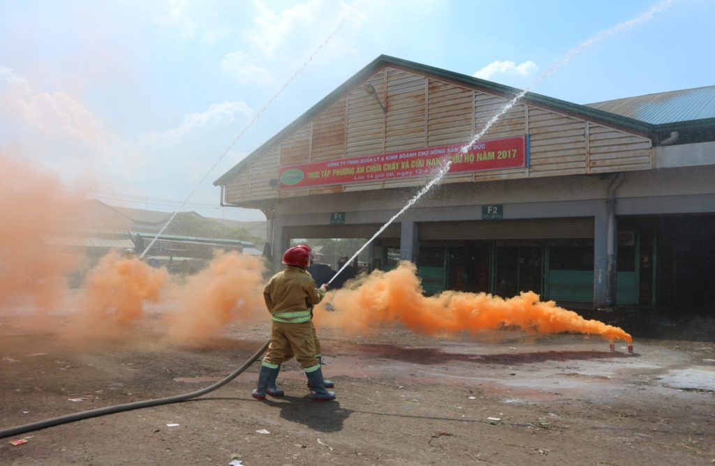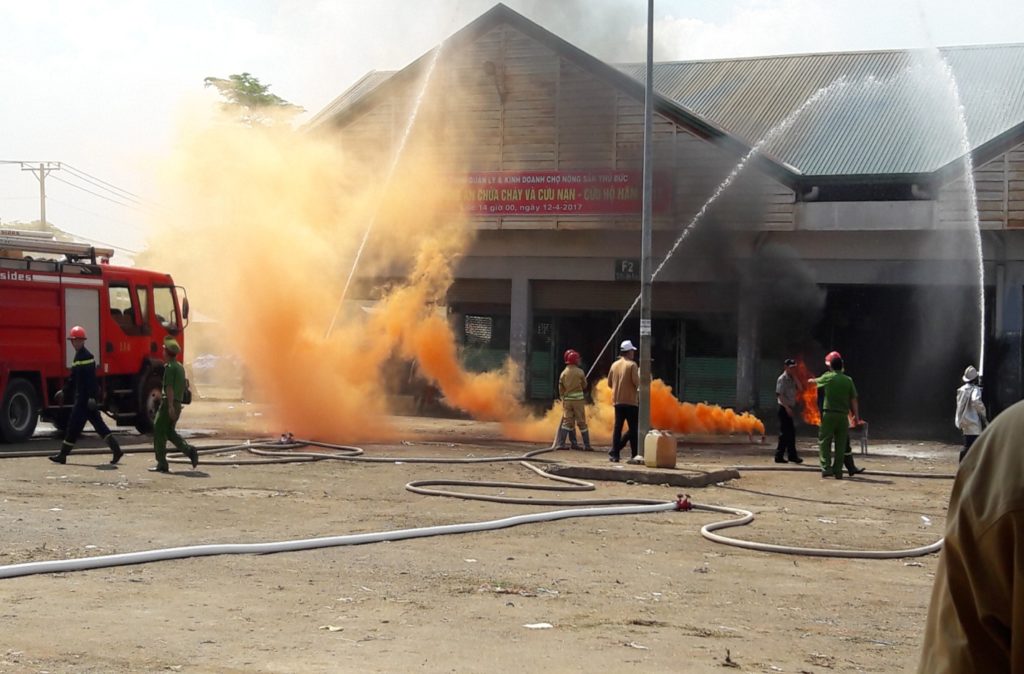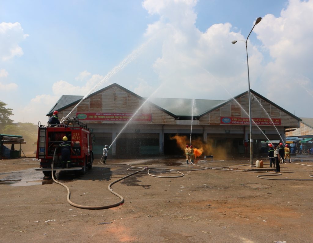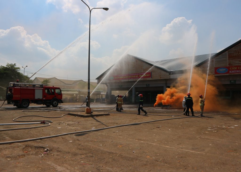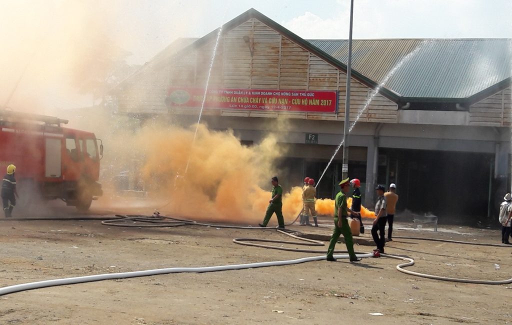 Buổi diễn tập phương án chữa cháy và cứu nạn – cứu hộ năm 2017 vào lúc 14giờ 00 ngày 12 tháng 4 năm 2017 tại đường 2, khu vực chợ B ( từ F1 – 1 đến H2 – 1) Chợ Đầu Mối Nông Sản Thủ Đức với sự phối hợp của lực lượng phòng Cảnh Sát PCCC Quận 9 và lực lượng PCCC tại chỗ của Công ty.